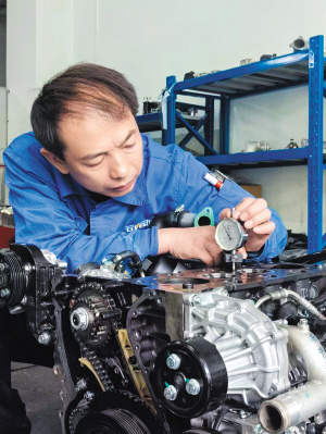 装配拧紧轴承盖螺栓时,不需要使用扭力扳手,纯靠手感就能扳到所要求的力矩,大小相差不会超过3牛·米。别人啧啧称赞的绝技,在陈永看来不过是熟能生巧。他说:“做得多了、熟练了,就能发现其中的微妙变化,从中发现问题、找到问题。”